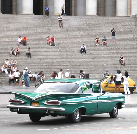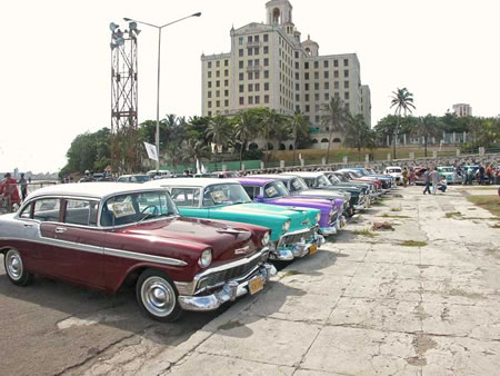 Pasa el tiempo e irremediablemente cada vez quedan menos miembros de aquella multitud de clásicos que antes del ´59 provocaba embotellamientos en las avenidas de La Habana. Pero aún son suficientes para provocar otra cosa: el asombro. Vistosos o renqueantes, tenidos algunas veces como lujo y casi siempre por necesidad, los viejos autos son una de las tantas caras insólitas de esta ciudad barroca, impredecible, que se hace moderna a pasos de gigante pero se niega a dejar atrás la memoria.