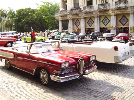 Museos sobre ruedas. Así pudiera llamárseles. Museos de durabilidad y Museos de la ecléctica mecánica cubana, heredados de generación en generación, ejemplo vivo de la transmutación de la necesidad en folclore, lujo y negocio de alquileres. La mayoría tuvo que hacer magia para salvarlos de la invalidez con piezas del campo socialista, que fueron a parar a los viejos y potentes motores norteamericanos. Otros, sin embargo, son verdaderas reliquias, envidia de coleccionistas.