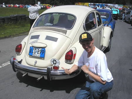 Lo registré en la página Web de VW1302 www.1302super.com/ , donde aprendí que se llamaba así, debido a que es un Súper Beetle (no virus) con suspensión delantera McPherson, pero con el parabrisas semicurvo. Al poco tiempo, apareció otro VW idéntico a este, pero en Alemania. Lo tenía un joven (de mi misma edad) quien se lo había comprado recientemente a una señora de edad, quien también había sido su única dueña. Con Thomas Görlitz comenzamos una amistad virtual y ya en 1999 tendríamos la oportunidad de conocernos, cuando él por primera vez viajaba a USA y yo estaba viajando con mi VW1303 Automático, Marina Blue, modelo 1974. www.oldbeetle.com/usatrip . Más de 15000 kilómetros sin ni siquiera una llanta pinchada. Los únicos inconvenientes que tuvimos, se debieron a las altas temperaturas. Se reventó la correa entre Houston y Dallas, en un día que nos hizo 108°F y luego de viajar por Death Valley, entre Las Vegas y San Bernardino (lugar con el triste record de mayor cantidad de motores VW aircooled fundidos) se pegó el bendix y tuvimos que ser empujados, por otro dueño de VW Automatic.