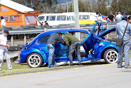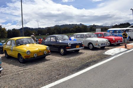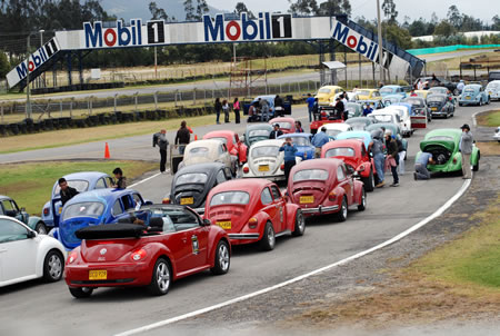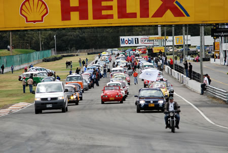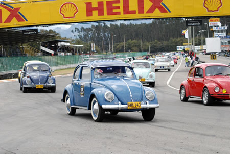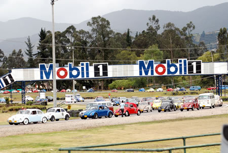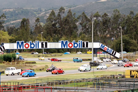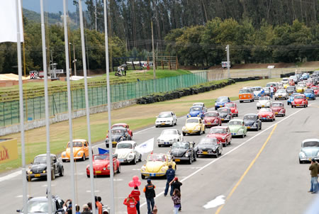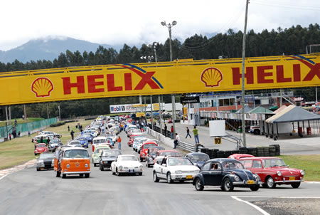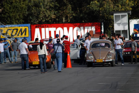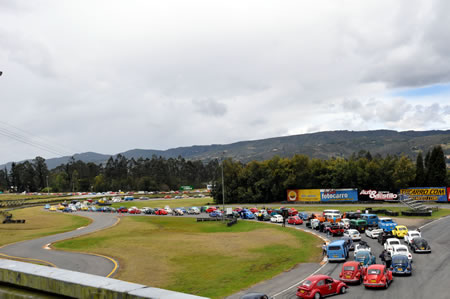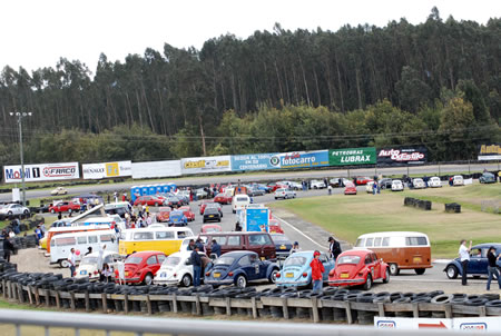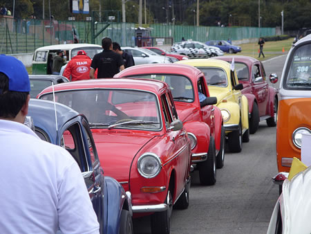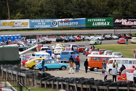 A la llegada del Autódromo pudimos apreciar como los VW comenzaban a entrar y hacer la fila triple en el circuito largo del Autódromo y como prácticamente la cabeza de la Caravana, se encontraba con la cola. Así dimos los 2 giros de desfile y al tercer giro, como en coordinación con el personal de Autódromos y los comisarios de la FCAD, se realizó el parqueo de los vehículos rápidamente, sin tropiesos y por sus debidas categorías.