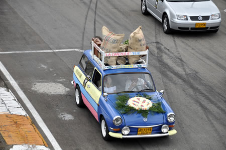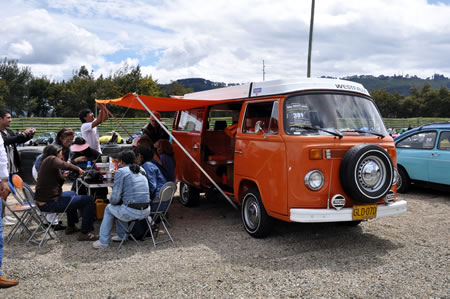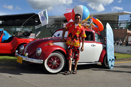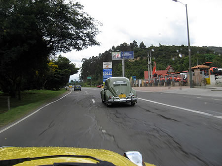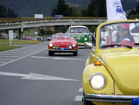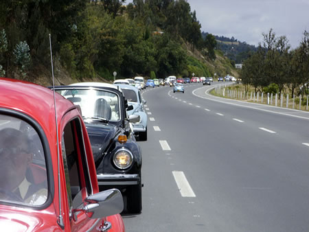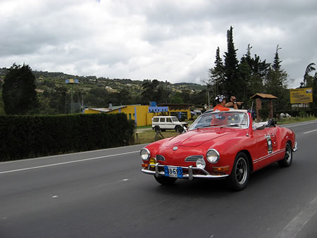 Llegué pasadas las 8:00a.m. al Outlet Centro Comercial Bima, con Carlos Valencia y Luís Fernando Velez, directivas del Club VW Cali que viajaron ese mismo día para no perderse este evento. Con sorpresa encontramos que aunque se había citado a los participantes a las 9:00a.m., ya habían más de 30 VW, además de los del equipo rojo. Comienza la logística y parte de nuestro equipo y con colaboración de las personas del Outlet Centro Comercial Bima, se comienza la organización de los VW en el parqueadero. Los demás están trabajando en el Teatrino del Outlet Centro Comercial Bima, donde se reciben las inscripciones y se entregan los números de acuerdo a las inscripciones, el reglamento y la bolsa con los souvenirs. Nuestro amigo Kike Llamas, presidente de la Federación Nacional de Clubes Volkswagen en Colombia, quien vino desde Armenia especialmente a este evento, amenizaba e invitaba a los participantes a seguir las instrucciones de los organizadores. A las 11:30a.m. comienza el proceso de salida del Outlet Centro Comercial Bima en coordinación con la policía de Guaymaral y de Carreteras, la cual se realiza durante 30 minutos. En esta ocasión nos dividimos con Andrés García, quien salió liderando la Caravana, detrás de los VW de Colwagen y yo salí casi de último en la Caravana. Pude apreciar que la Caravana tenía una longitud de más de 4 kilómetros y que todos estaban en fila, por el carril derecho, en completo orden.