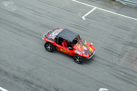 A las 4:00p.m. se dio inicio a las carreras de VW empujados, en los cuales se recorren 200 metros con 3 personas y uno empujando, con motor apagado. También se dió la prueba del VW que más gente le quepa, en el cual se metieron 40 personas entre una Microbus bay window T2.