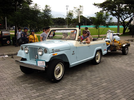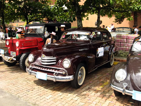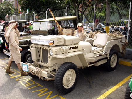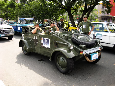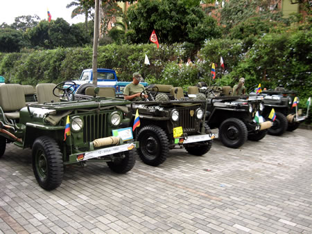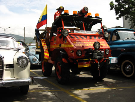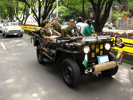 Las imágenes aquí exhibidas muestran que como en todo buen desfile, los animadores recurrentes no podían faltar: Además de los consabidos modelos y marcas como Jeep, Ford A, T-Bird, VW que siempre están ahí, hubo grupos y carros bien especiales. Dos inéditos Packards verdes se estrenaron majestuosos: El primero, un clásico legítimo. Un convertible que había pertenecido al expresidente Alfonso López Pumarejo y que demoró años en ser presentado, y una hermosa limosina de 1948 en un brillante tono manzana metalizado con un pasado tan opulento como triste. En su interior iba don Diego Echavarría Misas, presidente de Coltejer a finales de los años sesenta cuando fue secuestrado, en el primer caso de retención forzosa célebre de la historia colombiana. Este Packard de inmaculado interior se la pasó más de veinte años escondido de garaje en garaje, hasta que por fin el Desfile le curó el “fucú” por el que han pasado otros carros lujosos que inocentemente han sido escenario de magnicidios y demás tragedias. Grupos de Jeeps militares incluyendo los VW Kubelwagen e Iltis, los fúnebres de la San Vicente de Medellín, por primera vez un grupo selecto de policiales colombianos en gris o negro con blanco, y al final, los bomberos de Medellín en sus American La France o International. Dos damas más un caballero inglés hechos de madera: Hablamos aquí del Morgan azul (el cual fue vendido a su actual dueño por un aburrido poseedor que no quería tener más ese “bulto’e leña”), y de las dos camionetas “Woody Wagon” oriundas de Ford y de Plymouth que llegaron de Bogotá y de Sutamarchán. De muchas ciudades de Colombia y de Ecuador llegaron carros y delegaciones ávidas de protagonismo, inclusive desde Villavicencio llegaron ilusionados participantes con patrocinio de autoridades municipales a hacer presencia llanera en Medellín.