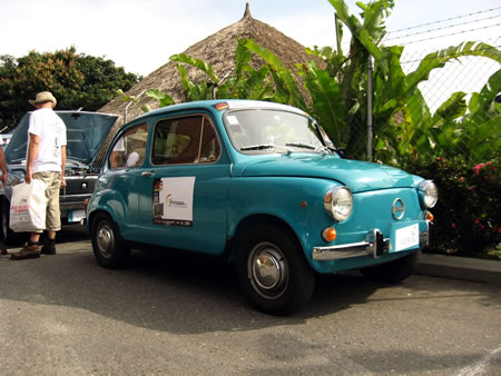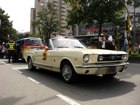 Pero los grandes protagonistas fueron los que llegaron con el aura de la aceptación pública: así como en el desfile de silleteros participa por obligación la silleta corriente y pequeña con las flores nativas de Santa Helena para vender en las plazas de la ciudad, los grandes clásicos y antiguos abrían calle de honor por primera vez a los productos ensamblados en Colombia y en condiciones inéditas: Edad de antigüedad extendida hasta 1985 para carros oriundos de Sofasa, Colmotores y la Compañía Colombiana Automotriz en estado de originalidad completo. Este reconocimiento de los organizadores, más que justificado, convierte al Desfile de este año en un hito en los anales de la conservación de autos antiguos en Colombia y cierra un antecedente exitoso iniciado en el Desfile bogotano del 8 de diciembre del año anterior cuando se hizo la convocatoria a clubes monomarca, donde por primera vez circularon Renaults, Simcas, Dodge y Fiat. A Medellín que celebraba el homenaje en parte por el 40 aniversario del R4 colombiano, por el inicio del carro popularizado en Colombia desde los años setenta, y para quien así lo quiera ver, del Bicentenario, llegaron los más esmeradamente cuidados modelos nacionales que se hayan visto: Cuatro, el mágico número del “Amigo Fiel”, fue también la cantidad de estos representantes en el desfile, de los cuales, además del famoso N° 1 “Azul Pastrana” y de un Plus 25 del 79, se dio el encuentro de Titanes de los dos primeros Renault 4 colombianos con placas de antiguo. Un momento glorioso que muchos aficionados no se querían perder. Por la marca francesa del rombo circuló un R6 de la serie final en Colombia, el único R12 1974 del desfile, recién salido de restauración también circuló con majestad y ovación luciendo su color naranja original. Dos R18, un GTX blanco que revivía los viejos comerciales del desafío de la potencia, y junto a tanto tenor, una hermosa y joven soprano bogotana, la R18 Break 1982 verde, se unía al coro de damas que desfiló por Medellín. Dos luminosos “Topolinos” en naranja y azul aguamarina, al cual muy atrás se le adiciona el Seat 600 1967, aumentaban la sonriente emoción de todos. Un hermoso Jeepster Commando con Lambretta en remolque, un Zastava 1300 blanco del 71, y dos 147 (uno de ellos la escasa camioneta Panorama) completaban el cuadro de honor de la C.C.A. Por Chrysler-Colmotores (pues no hubo participación Chevrolet ni Austin), también con placas azules, el Simca 1204 “Llanero” 1971 circuló entusiasta y generando comentarios de felicitación. En el mismo cuadro estaban los Dodge Dart, Demon, Polara, y hasta una Pick Up Adventurer. El favor del público con estas máquinas que aun hoy son muy comunes en la vía fue evidente y legítimo. Nunca antes la frase de cajón “En mi casa tuvimos uno de esos, muy bueno nos salió, lo felicito por su carro” había sido tan copiosa y sentida, y demostraba de una vez por todas en un escenario público, que el carro ensamblado en Envigado, Bosa, o la Calle 13 de Bogotá, es tan noble y carismático como el fabricado en Detroit, Stuttgart, Turín o Coventry. Así como de nuevo abundaron las pelucas afro, las balacas hippies, los vestidos largos, o los sombreros Borsalino, los uniformes de los clubes monomarca con todas sus insignias fueron lucidos con orgullo por los representantes de Tragacaminos 1500-Polara, Club del Topolono, Club Simca o Club R4 Colombia, cuyos colectivos entraban en la misma categoría de los clubes regionales de antiguos y clásicos. Todo un viejo sueño de reconocimiento histórico y social finalmente se hacía realidad y la gente captaba el mensaje….