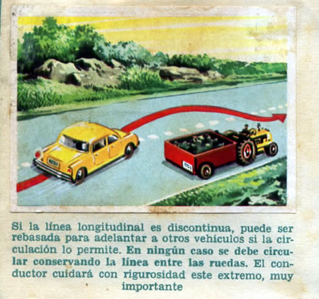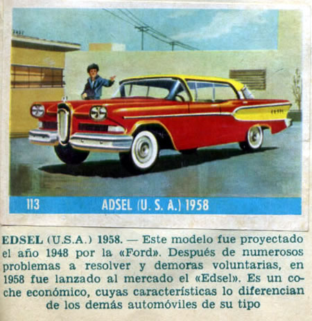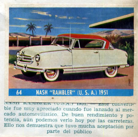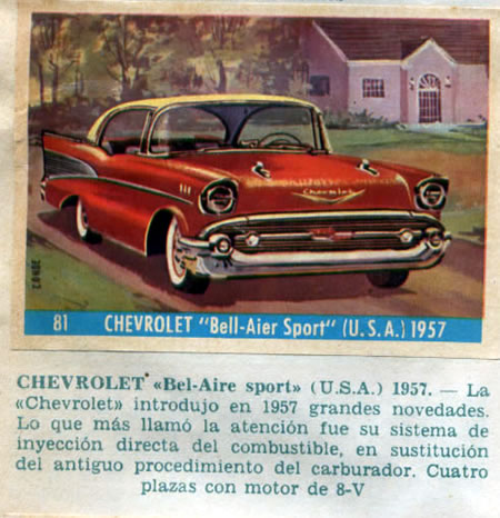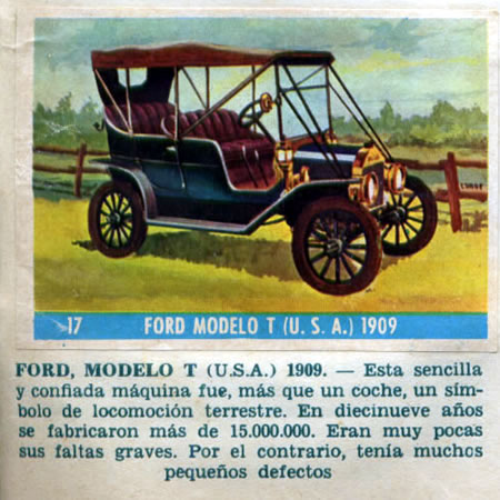 Sin embargo, el gran valor agregado de las Chocolatinas Jet, bautizadas así por el famoso paso “de la mula al jet” con los Boeing 707 a reacción que estrenaba Avianca, han sido siempre sus laminas adheridas en el foil protector de la barra destinadas a llenar un álbum coleccionable. En el presente, esta el de “El Mundo de los Animales” con figuras autoadhesivas tipo Panini, lo cual supuso una revolución respecto al anterior de “Historia Natural” que estuvo en el mercado entre los años 60 y el 2005, y cuyas laminas conocieron el Colbón, el engrudo casero, o la goma arábiga. Harto conocidos estos dos álbumes de inspiración ecológica que fueron cartilla informal en nuestros tiempos escolares, eclipsaron otras series precursoras de las colecciones Jet. Cuando se lanzaron en 1961, los álbumes y sus respectivas laminas cubrían temas mas relacionados con las ciencias sociales y aplicadas: Uniformes militares, navegación marítima, aviación, y muy especialmente, el álbum Autojet, cuyas figuras nos permitimos exponer a continuación: En un álbum de papel periódico impreso en tinta verde, se compilaban 250 laminas ilustradas en color que cubrían la historia del automóvil desde los tiempos previos a Daimler y Benz, hasta las expectativas en el futuro, pasando por exhibiciones de camperos, camiones y vehículos especializados. Esta obra, cuyos derechos fueron adquiridos en la Editorial Bruguera de España, mostraba a los niños colombianos de 1961 (y con seguridad a mas de un adulto gomoso), el mundo contemporáneo que llegaba con retraso al país de la mano de los ostentosos carros de Detroit de aletas y doble farola, así como lo más representativo del auto europeo que recién se degustaba: Renault Dauphine, Peugeot 404, Mini Morris, o el Ford Taunus alemán que parecía clon europeo del Falcon. Se supo que en la Unión Soviética se producía el Moskovitch, y que el menospreciado imperio japonés hacia los raros Datsun o Toyota. Finalizaba el álbum con un compendio ilustrado de las normas españolas circulación y transito.