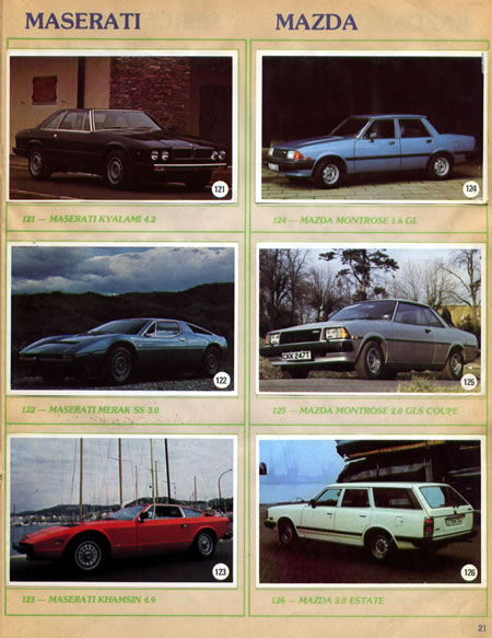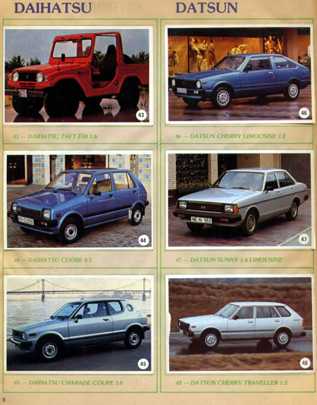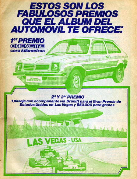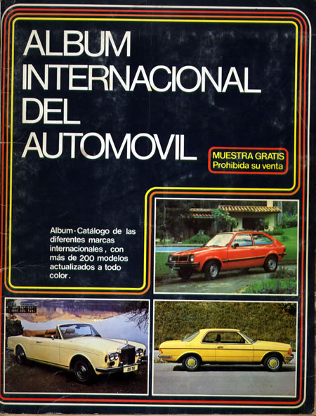 Dicho álbum tenía tres claros patrocinadores, y el llenarlo implicaba participar en sorteos: Viajes por cuenta de Braniff Airlines, que precisamente entraría en quiebra a finales de ese año; juegos completos de llantas Uniroyal con su recordada referencia de “La Pantera”, y como no, un Chevrolet Chevette cero kilómetros. De hecho, este álbum fue uno de los primeros mecanismos para promocionarlo publicitariamente, y como no, tuvo su respectiva lámina en el apartado de la General Motors (la organización del álbum era por orden alfabético de marcas). No era la única curiosidad del Álbum Internacional del Automóvil: Por Estados Unidos aparecían GM (claro está), Ford (Detroit y Europa) y American Motors con Jeep y Eagle; pero la infortunada Chrysler quedó por fuera. Obviamente el cambio de intereses en Colmotores y el afán por hacer borrón y cuenta nueva con Chevrolet obligó a Dodge y demás a ser suprimidos. Por aparte aparecen Opel y Vauxhall, la totalidad de las industrias alemana, italiana, francesa (el único rezago Chrysler era la fusión de Simca con Talbot), inglesa (que ya estaba en problemas), y japonesa. Tan sólo dos representantes del telón de Acero aparecen: la rusa Lada con todo y el campero Niva 2121 y la casi olvidada Skoda checoslovaca. Quedan en deuda algunas marcas consideradas cruciales en la historia como Volvo con la cual el colombiano ha tenido costumbre, no obstante aparece la también sueca pero desconocida Saab, al igual que los extraños Panther. Un hecho desconocido del Álbum Internacional del Automóvil, es que todo su material (excluyendo al Chevette) fue extraído del catálogo italiano Autocatalogo Internazionale 1980 impreso por la editorial Edizioni A.I.D.S.p.A de Milán. En dicha publicación aparecen muchos modelos y marcas más que no alcanzaron a salir en medio de las 263 figuras en papel Propalcote destinadas a llenar el Álbum Internacional del Automóvil, del cual nos permitimos exhibir algunas de sus láminas más recordadas en el presente espacio.