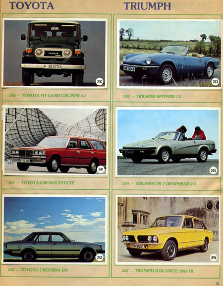 En este ambiente, justo en pleno primer semestre del año, y mientras Edizione Panini lanzaba el ya icónico álbum del mundial de figuras autoadhesivas, Carvajal hacía lo propio con el Álbum Internacional del Automóvil. Este coleccionable de sobria portada negra costaba $15 y sus sobres que contenían tres láminas fotografiadas en color, es quizás uno de los más recordados en Colombia, y si se encuentran ejemplares en buen estado y completos, pueden costar más de lo esperado de acuerdo al comerciante, o abiertamente no estar en venta. Mientras los aficionados al fútbol adherían por si solos a Zico o a Maradona en el álbum España 82 patrocinado por el Fresco Royal, los niños entusiastas de los carros aplicaban una línea de Colbón, goma o del nuevo Pega-Stick en la parte superior de Alfa-Romeo, Rolls-Royce, Ferrari, o muchas otras marcas internacionales. La lámina no se pegaba completa, pues debajo de ella estaban todos los datos técnicos del vehículo impresos en la página respectiva; salvo que fuesen los “rompecabezas”, es decir, un carro impreso en tres partes (casi siempre de alta gama) que había que completar. Los datos eran muy completos; pero con el inconveniente de poner el peso del carro en libras en vez de kilos. Había que jugar a las conversiones con una calculadora.