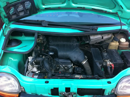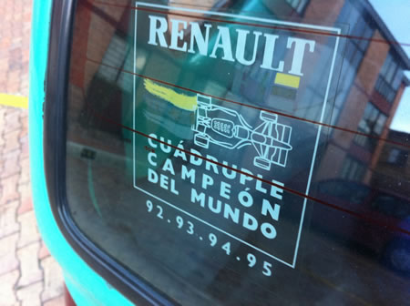 Detalle de la calcomanía original del Renault Twingo colombiano 1996