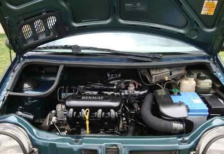 Al modelo inicial del Twingo se le montó el tradicional motor C3G (Cleón) usado en otros vehículos de la marca como el Renault 9 Brío. Este propulsor de cuatro cilindros, 1.239 c.c de 8 válvulas movidas por cadena que producía 55 HP/5.300 rpm y un torque de 9,4 Kgm/2.800 rpm, alimentado por un sistema de inyección monopunto Magnetti Marelli, con un índice de compresión de 9,2 a 1 sobresale por su potencia, torque, fortaleza, duración y bajo consumo de combustible. Se acoplaba a una caja de cambios manual de cinco velocidades (JB1). Suspensión delantera tipo McPherson y trasera eje rígido variable con espirales. Mientras que el sistema de frenos con asistencia mediante vacío contaba con discos ventilados adelante y campanas atrás y rines de 13 X 4,5 pulgadas con llantas de medida 145/80 R13.