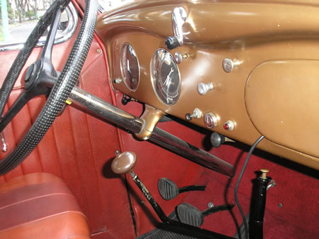 En nuestro modelo de 1935, la caja de cambios es manual de tres velocidades adelante, con toma directa,con la primera marcha sin mecanismo de sincronización y sistema de embrague mecánico. Las ruedas motrices son las traseras, las cuales son movidas por un cardán enfundado. Los rines de 16 pulgadas fueron sustituidos por deterioro, y su lugar ocupado en la actualidad por los utilizados por un Plymouth de 1948.
