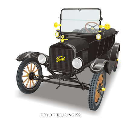 El Ford T: Mítico modelo del cual se fabricaron 15.033.000 millones de unidades entre octubre de 1908 y mayo de 1927. Aportó entre muchas otras cosas la implementación de la cadena de montaje masiva en el industria del automóvil, este concepto procedía de industrias diferentes como la del sacrificio técnico de animales y permitió con su utilización desde los modelos de 1914, que la producción de cada uno de los autos, bajara de 12 horas hasta 1 hora y 30 minutos. Adicionalmente fue el primer automóvil construído con partes intercambiables, debido a la gran precisión usada en la fabricación de estas, con lo que también se dio origen a al mercado de las autopartes. Hay que recordar que hasta este momento de la historia y la evolución del automóvil, cada fabricante producía sus autos uno a uno de manera artesanal, cuadrando pieza por pieza en cada a vehículo, hasta lograr que funcionara lo más correctamente posible.
