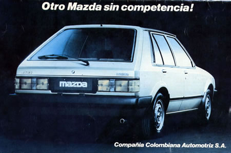 Al terminar el proceso de ensamble de los Fiat 147 y 131 Mirafiori en el país, la Compañía Colombiana Automotriz se lanza a producir los automóviles Mazda 323. Los primeros modelos con carrocería sedán de cuatro puertas se presentaron al mercado en octubre de 1983, al poco tiempo se lanzaría el 323 con carrocería de cinco puertas (Hatchabck) que a diferencia del modelo sedán, traía un motor de 1.296 c.c y caja de cambios de cuatro velocidades.