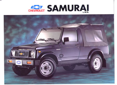 Chevrolet Samurai: Conocido en su país de origen Japón como SJ413, se empezó a ensamblar en el país en 1991. Tuvo a lo largo de su vida que terminó en el año 2002 carrocerías cortas y largas, con cabina alta, baja o carpada.