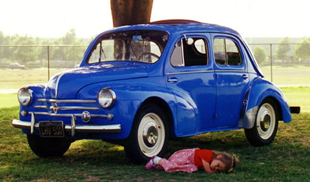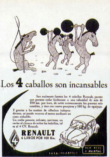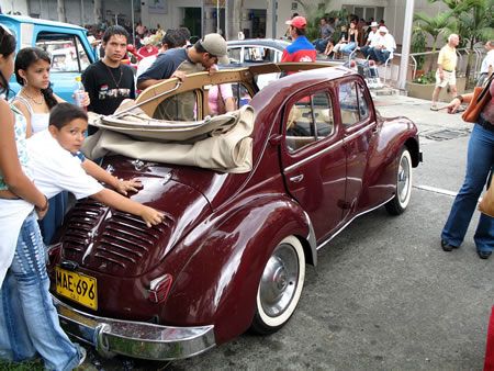 Cuando el carro estaba en el garaje yo permanecía en su interior por horas y horas, soñando con conducirlo, lo cual hice realidad después de fijarme con gran atención en los movimientos y procedimientos que mi padre y mi madre hacían al manejarlo. Un día decidí que ya estaba listo, que había llegado el momento de mover el carro, halé la manija de la puerta, la abrí hacia atrás y monté cojines en la silla del conductor, llevé la palanca de cambios a posición neutral, introduje la llave en el switch de encendido y a continuación halé una manija ubicada en medio de las sillas delanteras para poner en marcha el motor, lo que logré al tercer intento. Con gran esfuerzo oprimí el pedal del embrague e introduje la primera velocidad y comencé a soltar el pedal izquierdo a medida que oprimía el derecho, el auto comenzó a moverse como caballo encabritado apagándose el motor. Volví a encenderlo y ahora si arrancó con suavidad, abandoné el garaje y le di dos o tres vueltas al parque que había frente a mi casa. Luego vendría lo más difícil, volverlo a guardar, lo que logré después de varios intentos y la ayuda de la empleada del servicio que me guiaba y lo mejor sin que ninguno de mis padres se enterara hasta muchos años después. Recuerdo que la visibilidad posterior era muy precaria y aún más para mí que apenas superaba los 8 años de edad. Posteriormente repetí mi odisea unas cuantas veces antes que el 4 CV fuera vendido por mi padre, desesperado y aburrido con sus averías y cuantiosas facturas de taller.