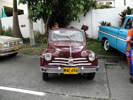 El 4CV había pertenecido al humorista caldense Hugo Patiño, según lo certificaban los documentos entregados por un comerciante en autos usados llamado Conde Rayo, quien nos vendió el simpático auto francés. Desde un comienzo fue el elegido por mi madre quien lo usaba para desplazarse diariamente de la casa hasta el trabajo y a todas las diligencias propias de una madre con tres hijos. A ella el 4CV le funcionaba perfectamente, no así a mi padre, quien generalmente cuando lo conducía tenía problemas mecánicos y debía regresar a la casa en bus, taxi, grúa o remolcado por el Renault 4 o por el carro de algún vecino. Mi madre solamente tuvo un pequeño incidente, cuando el distraído conductor de un gigantesco taxi Chevrolet Biscayne 1961 dañó el guardabarro delantero izquierdo, en una esquina del barrio La Castellana, una mañana en que se dirigía a su trabajo en la calle 26 con Avenida Caracas de Bogotá.