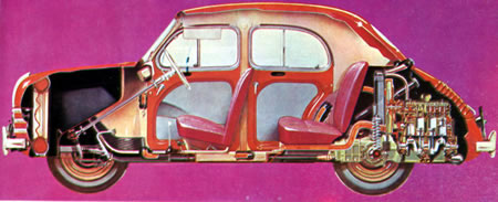 Este automóvil ya no tenía su mecánica original, ésta había sido reemplazada por un motor y una caja de cambios de Renault Dauphine que ya era de 850 c.c y cuatro velocidades adelante.