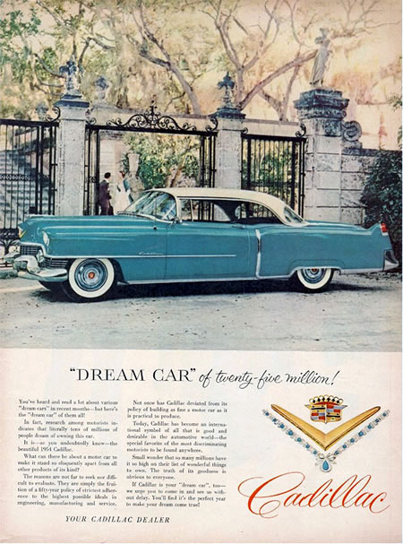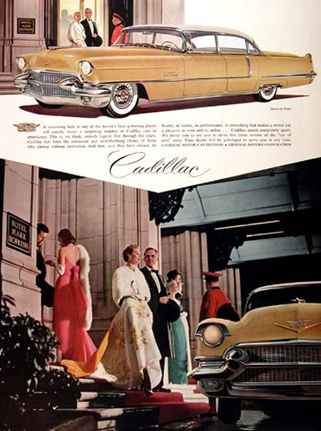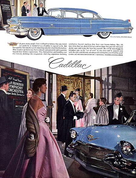 Los Cadillac de los años 1954 a 1956 representan el apogeo de la General Motors y de Harley Earl, que quería autos cada vez más largos, bajos y anchos. Los Cadillac de esta época tuvieron las líneas más elegantes de los cincuenta, un equilibrio entre la silueta redonda y abultada de los años 1950 a 1953, y las aletas angulosas de los años 1957 a 1959.