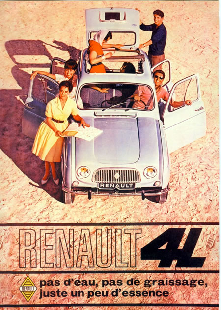 R4: Lanzado en 1961 con un motor 4 cilindros de 747 cms cúbicos. Producido entre 1961 y 1994 en Francia, Colombia, Italia, Australia, México, Eslovenia, España, Italia, Marruecos e Irlanda. Tuvo muchas variantes y se produjeron cerca de 8,135, 424 ejemplares. Es el auto francés mas vendido de la historia.