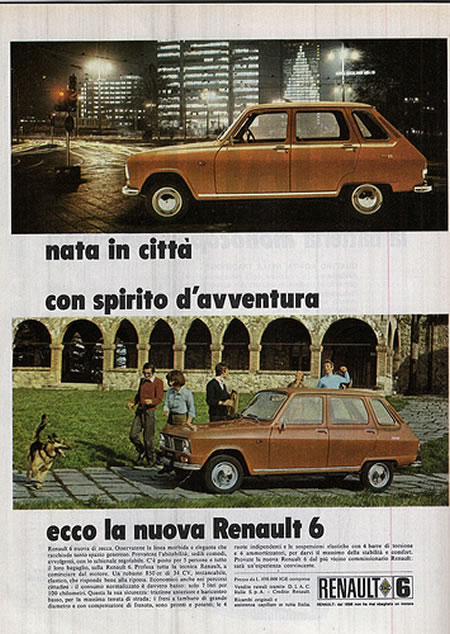 R6: Fabricado entre 1968 y 1980. Inicialmente con un motor 4 cilindros de 845 cms cúbicos. Es una versión más pequeña del Renault 16. Fue un auto relativamente fiable, pero su línea no tuvo mucho éxito y no tuvo el impacto de modelos como el R4 o R12. En España y Argentina este modelo se fabrico hasta 1986, en Colombia se ensambló entre 1971 y 1984. Hoy en día tiene muy poco valor en el mercado de los coleccionistas. Se estima que se fabricaron 1.700.000 unidades.