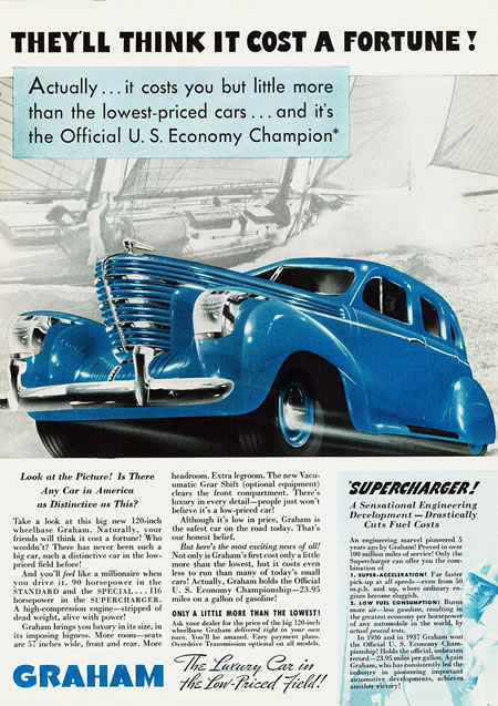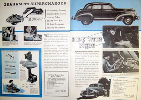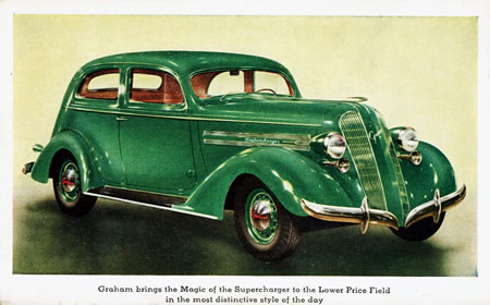 En 1934 la marca introduce motores con supercargador (“supercharged”), que incrementa significativamente la potencia. En 1936 las cosas no van muy bien: Graham tiene que comprar sus carrocerías a Reo y decide vender solamente autos con motores de 6 cilindros. Los Graham de 1936 y 1937 siguen siendo autos sólidos y fiables, pero estéticamente no son excepcionales.