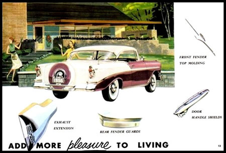 Las luces traseras eran mas grandes que en 1955 y los cromados sobre las puertas mas anchos. El capot era mas plano que en el año anterior y estaba adornado con un emblema de la marca y una ”V” cromada para los autos con motor de 8 cilindros. En la parte trasera las ruedas estaban más descubiertas que en el 55. En opcion se ofrecia la rueda de repuesto externa (“Continental Kit”).