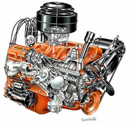 8 cilindros en V, 265 pulgadas cúbicas, (4.3 litros), 225 caballos, transmisión manual, con overdrive o automática (Powerglide), dos carburadores cuádruples
