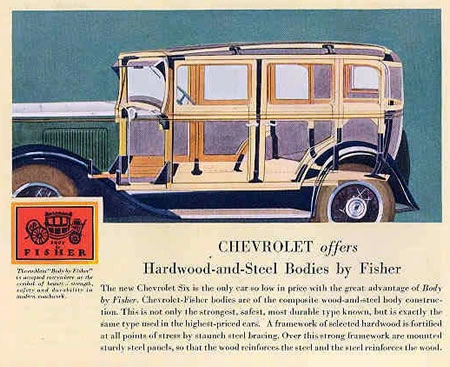 Catálogo Chevrolet carrocería Fisher con estructura en madera 1931