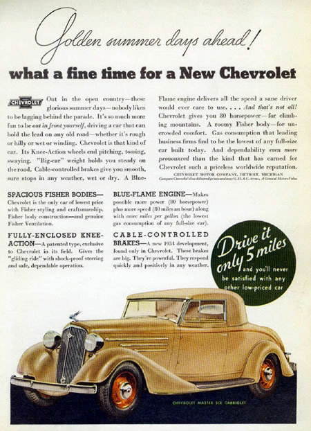 Publicidad Chevrolet Master Six Cabriolet 1934