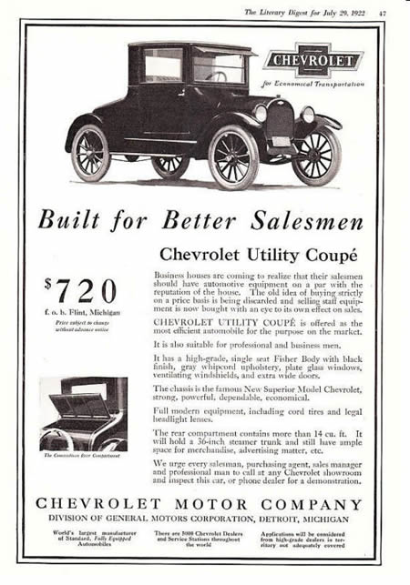 Publicidad Chevrolet Cupé 3 ventanas 1930