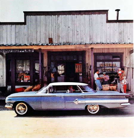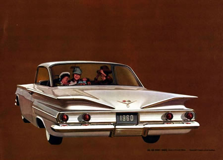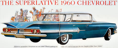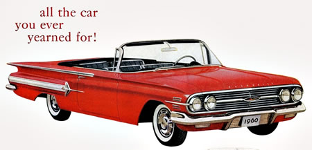 El Chevrolet 1960 es un modelo de transición entre el extravagante modelo 1959 con sus enormes aletas de cola y el modelo 61, con una línea más simple, característica de la nueva década que empezaba.