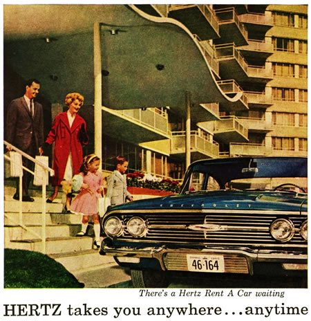Publicidad alquiler de autos Hertz, Chevrolet 1960