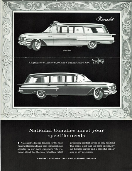 Publicidad ambulancias y coches fúnebres Chevrolet 1960