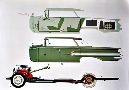 Al igual que en el periodo anterior, se ofrecen tres series: de base (Biscayne), intermedia (Bel Air) y de lujo (Impala). Notemos que es la serie Impala la que fue la más popular pues a un precio relativamente bajo brindaba opciones y terminados dignos de marcas mucho más costosas.