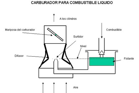 El carburador basa su funcionamiento en el principio de venturi que consiste en variar el diámetro interior de un tubo, con lo que se logra aumentar la velocidad de paso del aire, creando las condiciones propicias para la aspiración de la gasolina.