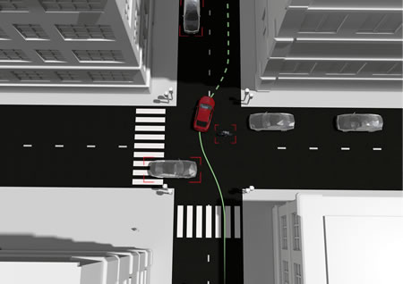 La vista de 360° se ve reforzada por un generador de maniobras, una nueva característica de seguridad que utiliza el software de identificación de rutas de escape libres de colisiones en todos los escenarios del tráfico.