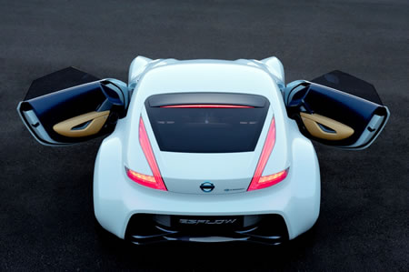 Tener un vehículo ecológico no debe ser algo que implique renunciar al placer de conducir. Un primer vistazo al ESFLOW basta para descubrir de qué tipo de vehículo estamos hablando; un capó largo que conduce hacia un inclinado parabrisas envolvente, un compacto habitáculo que sitúa a los ocupantes en el centro de gravedad del vehículo, poderosos pasos de rueda, sobre neumáticos de perfil ultra-bajo montados en llantas de seis brazos. El ESFLOW es, indudablemente, un vehículo deportivo y los expertos sabrán percibir su fuente de inspiración en una combinación de elementos propios de los deportivos Nissan, tanto clásicos como contemporáneos.