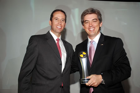 Jorge Mejía Presidente de GM Colmotores recibe el trofeo.