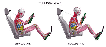 Los ingenieros japoneses evolucionaron el software de modelación humana virtual Total Human Model for Safety (Thums) que puede simular las posturas de conductores y pasajeros durante un accidente de tránsito. Esto permite un análisis informático más detallado de las lesiones.