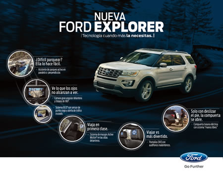 Desde su debut en el mercado norteamericano en 1991, la Explorer impuso el concepto SUV e hizo voltear la mirada de los consumidores hacia una alternativa tan cómoda como los automóviles, pero de mayor versatilidad. Desde entonces y tras 5 exitosas generaciones, la Explorer encarna 25 años de liderazgo, innovación y tecnología con más de 7 millones de unidades comercializadas en alrededor de 100 mercados del mundo, perfilándose como una de las camionetas más seguras, avanzadas y confortables del mercado global, y por qué no, en la mejor forma de definir la expresión ‘ir más allá’.