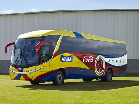 Con 13,1 metros de largo, el nuevo bus de la Selección Colombia no sólo es amplio, seguro y cómodo, sino que también responde a las exigencias tecnológicas del mercado actual, lo que le permite estar a la vanguardia del mundo moderno y superar las expectativas de un seleccionado “top” como el colombiano. Por fuera, el bus es bastante llamativo pues está pintado con los colores de la bandera colombiana y además cuenta con imágenes alusivas a nuestra selección y los logos de las empresas patrocinadoras. Por dentro, el vehículo viene equipado con un sinnúmero de accesorios que harán más placentero el viaje de los futbolistas.