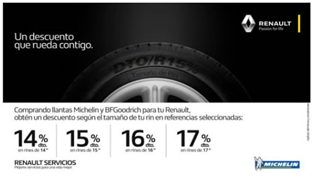 Adicionalmente, la Compañía tiene vigentes dos campañas de servicio: Hasta el próximo 15 de mayo, los clientes pueden recibir un descuento hasta del 17% en la compra de llantas Michelin y BFGoodrich.