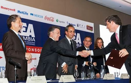 La clausura de la Asamblea contó con la participación del presidente Juan Manuel Santos, el embajador de Estados Unidos en Colombia, Kevin Whitaker, y la Ministra designada de Comercio, Industria y Turismo, María Claudia Lacouture, quienes resaltaron la importancia de la inversión estadounidense en el país.