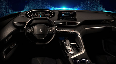 Los elementos que componen el i-Cockpit constituyen una apuesta única en el mundo del automóvil, al ser el únco en permitir el disfrute real de una experiencia de conducción exclusiva. El timón, de pequeñas dimensiones (351 mm x 329 mm) aumenta la maniobrabilidad y las sensaciones de la conducción. La dirección asistida eléctrica, precisa y fiel al comportamiento del vehículo, facilita todas las maniobras.