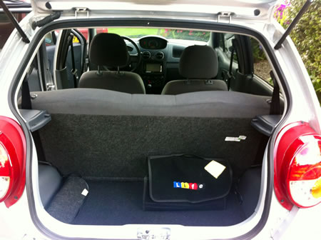 El habitáculo está bien logrado, y dentro de él, se pueden ubicar 4 adultos de estatura media o cinco si son delgados o niños. Todos cuentan con cinturón de seguridad. El espacio para carga como es de esperar es reducido, sólo 200 litros, aunque si se desea ampliar con sólo plegar la silla posterior aumenta esta importante área llegando a 845 litros.