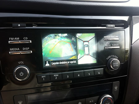 El Monitor Around View® exclusivo para la clase* que está disponible para X-Trail 2014, utiliza cuatro cámaras de ángulo súper amplio instaladas en el frente, los lados y la parte trasera del vehículo para proveer una vista virtual de 360° “Bird’s Eye View” de los objetos alrededor del vehículo.