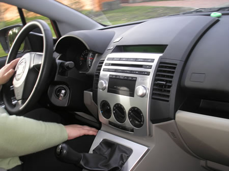 Al volante encontramos mandos muy completos y sobretodo ergonómicos, como es el caso de la columna de dirección graduable en altura y profundidad, a lo que se suma la palanca de cambios ubicada muy cerca al tablero del instrumentos y que de acuerdo al propuesta de Mazda, se puede accionar con sencillos movimientos de la muñeca del conductor, sin separar el codo del apoyabrazos.