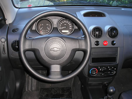 Adentro el espacio es amplio para cuatro personas adultas o para cinco un poco menos holgadas. Los acabados son muy básicos lo cual hace parte de la propuesta. El panel de instrumentos recurre a los testigos luminosos, con la excepción de los indicadores de temperatura del motor y del nivel de combustible que son del tipo aguja. No se cuenta con tacómetro, ni con vidrios, ni espejos ni bloqueo central de accionamiento eléctrico, pero en opción se puede solicitar el aire acondicionado. El radio también brilla por su ausencia, pero eso si cuenta con la instalación para montarlo.