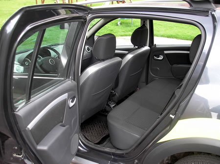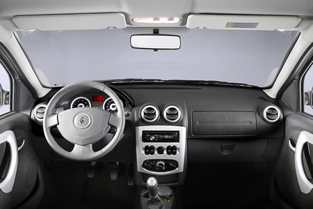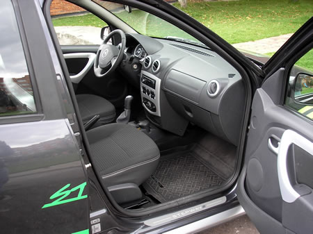 Al abordarlo se encuentran cambios pequeños frente al Sandero, modelo inspirador. Sillas en telas discretas y agradables al tacto y un soporte lateral adecuado. Instrumentación completa y funcional. Lo que si es exclusivo es la disponibilidad opcional de unos robustos tapetes en caucho tipo bandeja, que sin embargo no quedan bien fijados al piso debajo de los pies del conductor moviéndose permanentemente de su lugar, algo que ya deben haber revisado y solucionado tanto el proveedor del accesorio como la ensambladora.