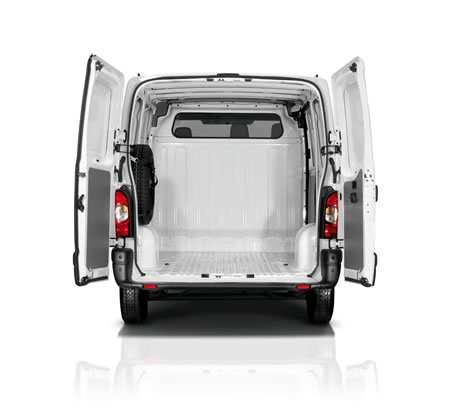 El acceso a la zona de carga o de pasajeros se facilita por las puertas traseras 180° y por la amplia puerta deslizante al lado derecho del vehículo. Adicionalmente, los parachoques, las luces y la parrilla tienen un diseño aerodinámico para mejorar el desempeño del vehículo