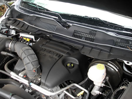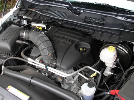 Se basa en un moderno y poderoso motor perteneciente a la legendaria familia Hemi de Chrysler que ya cumple 6 décadas de fabricación precisamente en este año 2011 y que no requiere presentación alguna. Este propulsor como orgulloso miembro de la poderosa familia Hemi es un V8 con sistema de apertura variable para sus 16 válvulas, con un desplazamiento de 5.700 c.c (350 pulgadas cúbicas) con una carrera del pistón de 99,5 mm y pistones de 90,9 mm de diámetro, un índice de compresión de 10,5 a 1, que gracias a un sistema de alimentación con inyección electrónica multipunto secuencial produce 390 HP/5.600 rpm y un torque de 56,21 Kgm (407 libras pie)/4.000 rpm, que se acopla a una caja de 5 cambios automática (545RFE) con manejo secuencial (ERS) que se acciona desde una palanca ubicada en la columna de dirección y que cuenta con las siguientes relaciones: Primera: 3,00 a 1, segunda : 1,67 a 1, tercera : 1,00 a 1,cuarta: 0,75 a 1, quinta :0,67 a 1 y reversa 3,00 a 1. Con sistema de tracción para escoger entre 4x2 y 4x4 a voluntad, con caja de transferencia NVG 243 Part Time 4WD con las siguientes relaciones: Alta 1,00 a 1.00 y baja: 2,72 a 1,00. La suspensión delantera es independiente con espirales, 4 brazos de control y barra estabilizadora. Mientras que atrás utiliza eje rígido con espirales y 5 brazos de control. El sistema de dirección es de cremallera y cuenta con asistencia hidráulica. El sistema de frenos es hidráulico con servoasistencia y actúa sobre discos en las cuatro ruedas (Adelante ventilados y atrás sólidos) con sistema ABS (Antibloqueo), EBD (Distribución electrónica de frenado) y ESC (control electrónico de estabilidad). El sistema eléctrico es de 12 voltios con alternador de 150 amperios y la batería de 700 amperios.